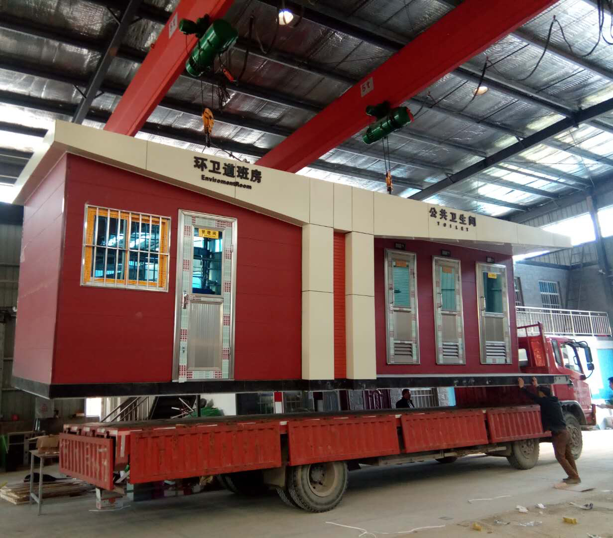 移動廁所簡介及制作方法:1、房體結構: 采用輕鋼龍骨結構,鋼材全部使用國家標準鍍鋅鋼材。根據房體的大小特選用國標方管(50-100)焊接而成。鍍鋅管厚度為2.8mm,方管經過徹底除銹后進行鍍鋅、防腐處理,處理后的結構使用壽命均在20年以上。這樣就會延長廁所使用壽命,使整座廁所的穩固性更強、更加結實耐用。2、墻體...